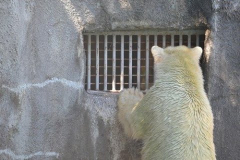 おやつの時間は決まってますが、この時は、それとは別にガス管を細工した果物等がつまった「玉手箱」が担当飼育員さんの手によって投げられました。(^^)