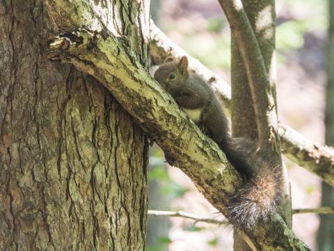 おぼつかない足取りで木の枝を降りて来るエゾリス君がいます。