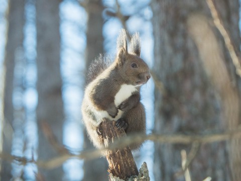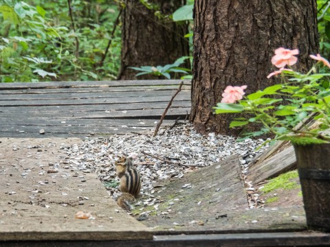 エゾリス君は冬毛から夏毛へ衣替え中です。