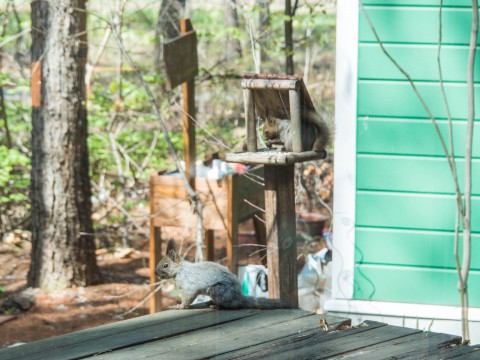夏の強い日差しの中・・エゾリス君がやって来ました。