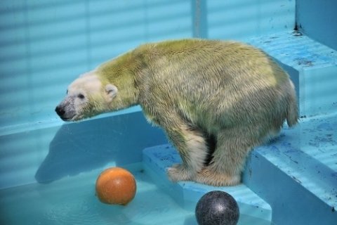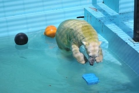 同じくイコロも氷をプールサイドへ。